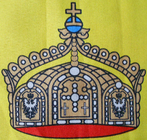 Kaiserkrone und Adler auf gelbem Grund ab. Hier ein Detail der Krone: